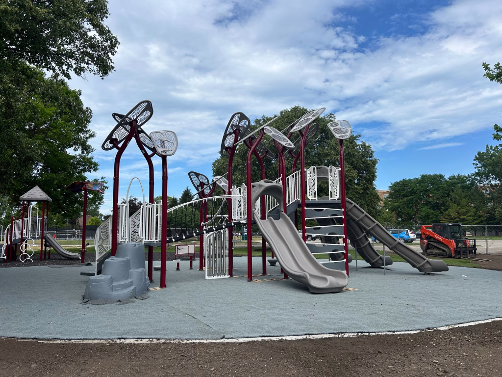 Installation of the new playground equipment is well underway. Structural components are being assembled, and the site is progressing toward completion, with substantial installation expected to be finalized by mid-next week.