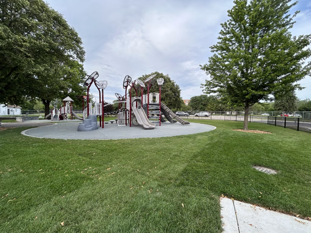 - Replacement of existing playground equipment and wood chips with new playground equipment options and safety surfacing.