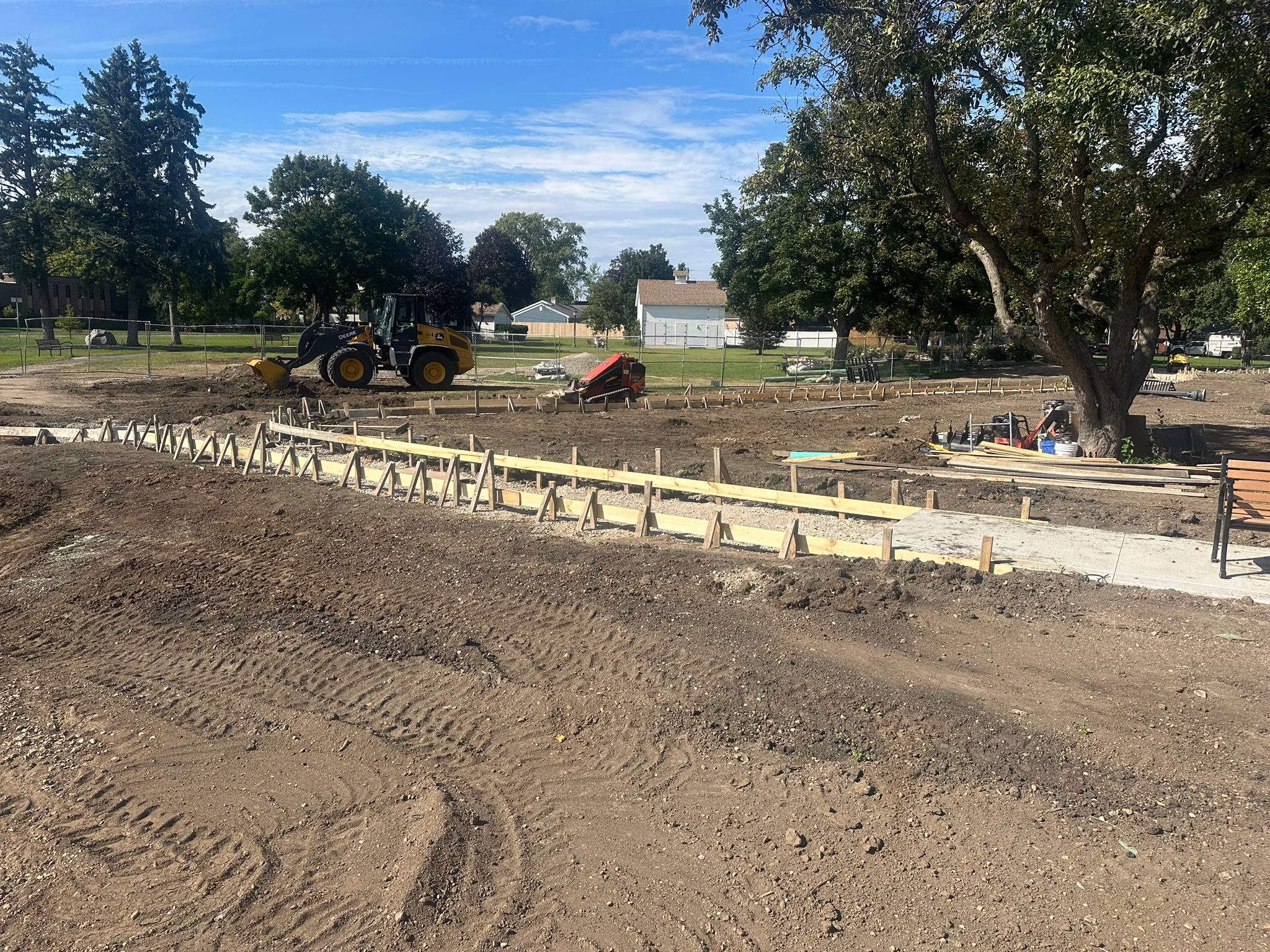 Crews at Chamber Park are clearing the site, grading the ground, and installing framing for new concrete walking paths that will circle the park. These improvements will enhance accessibility and make it easier for everyone to reach facilities throughout the park.