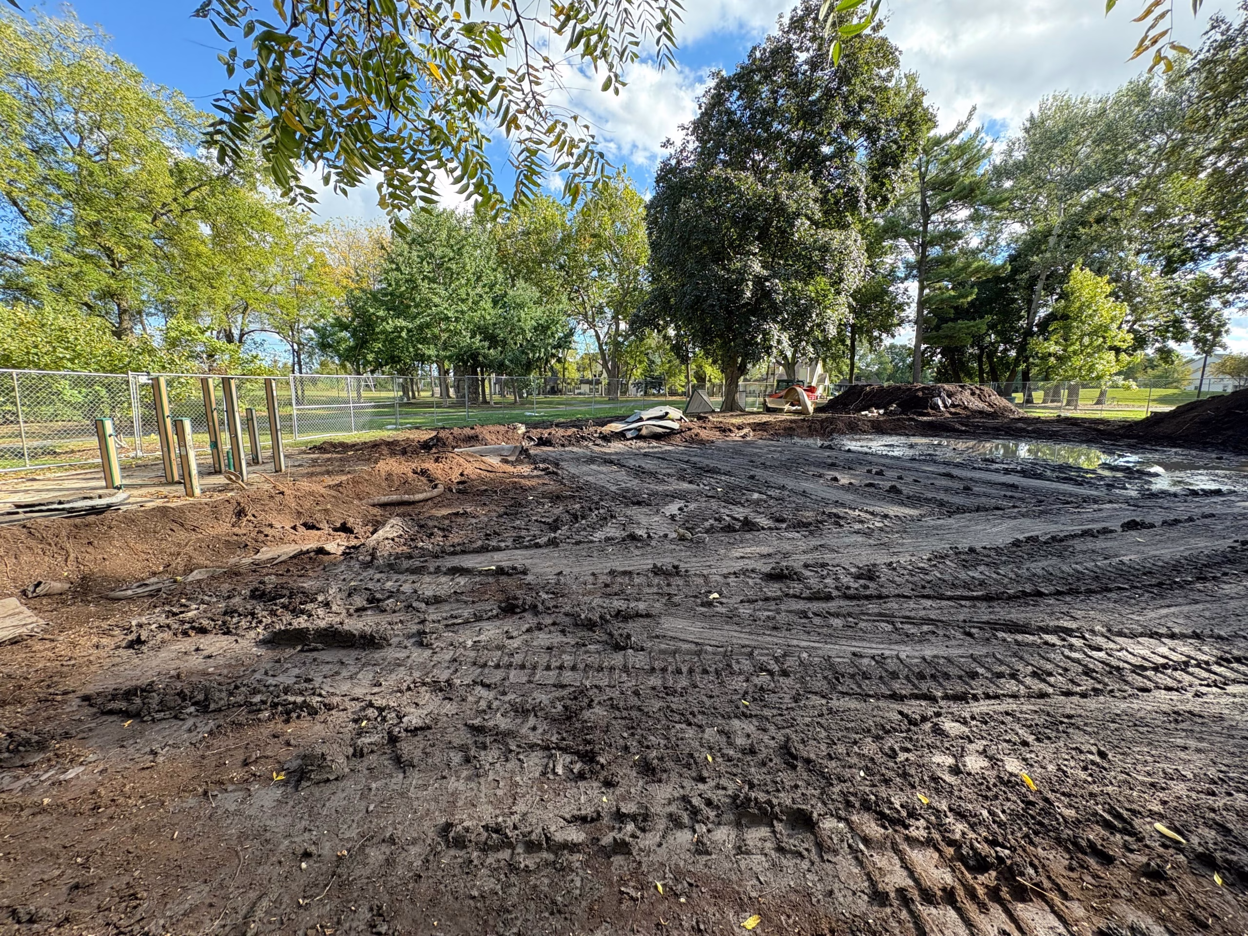 Parks staff continue site demolition to prepare for the construction of the new playground.