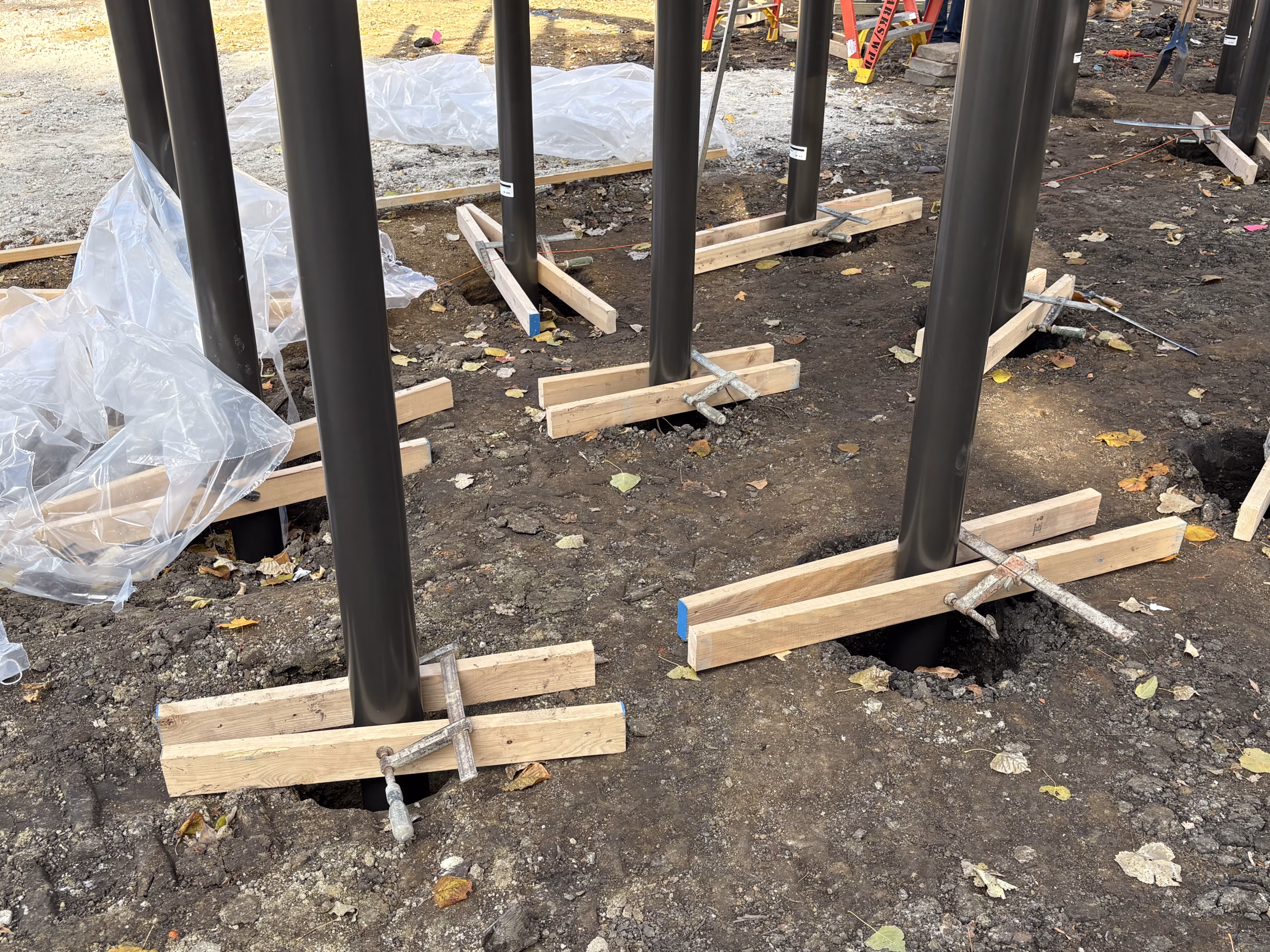 Installation of the new playground equipment at Denoyer Park is underway. Crews have begun setting posts and assembling the main play structure, with materials and components arriving on-site.